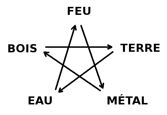 Les 5 éléments chinois sont le Bois, le Feu, la Terre, le Métal et l’Eau. Cela paraît très compliqué au début. Retenez simplement qu’ils sont une décomposition plus fine du yin yang.