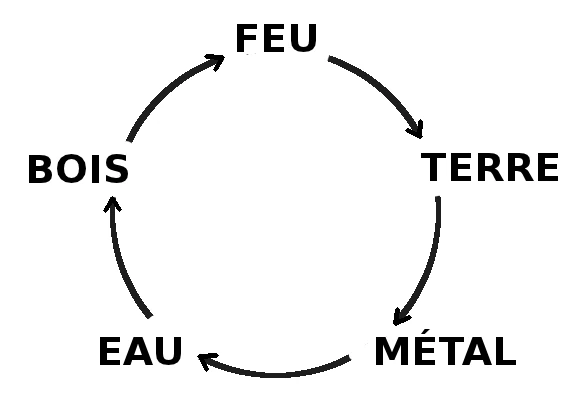 Un autre aspect des 5 éléments est le respect des cycles d’engendrement et de contrôle. Tous les éléments ne s’assemblent pas entre eux. Cet aspect est expliqué avec :